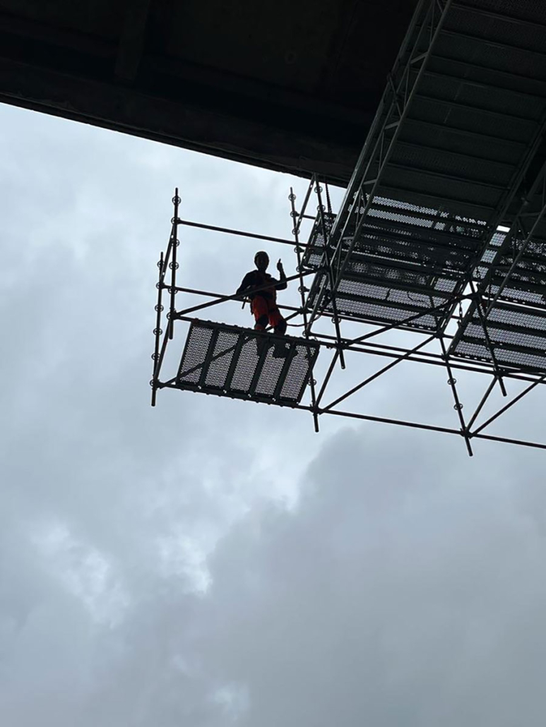 Montaggio dall'alto ponteggio sospeso multidirezionale - Tangenziale di Napoli